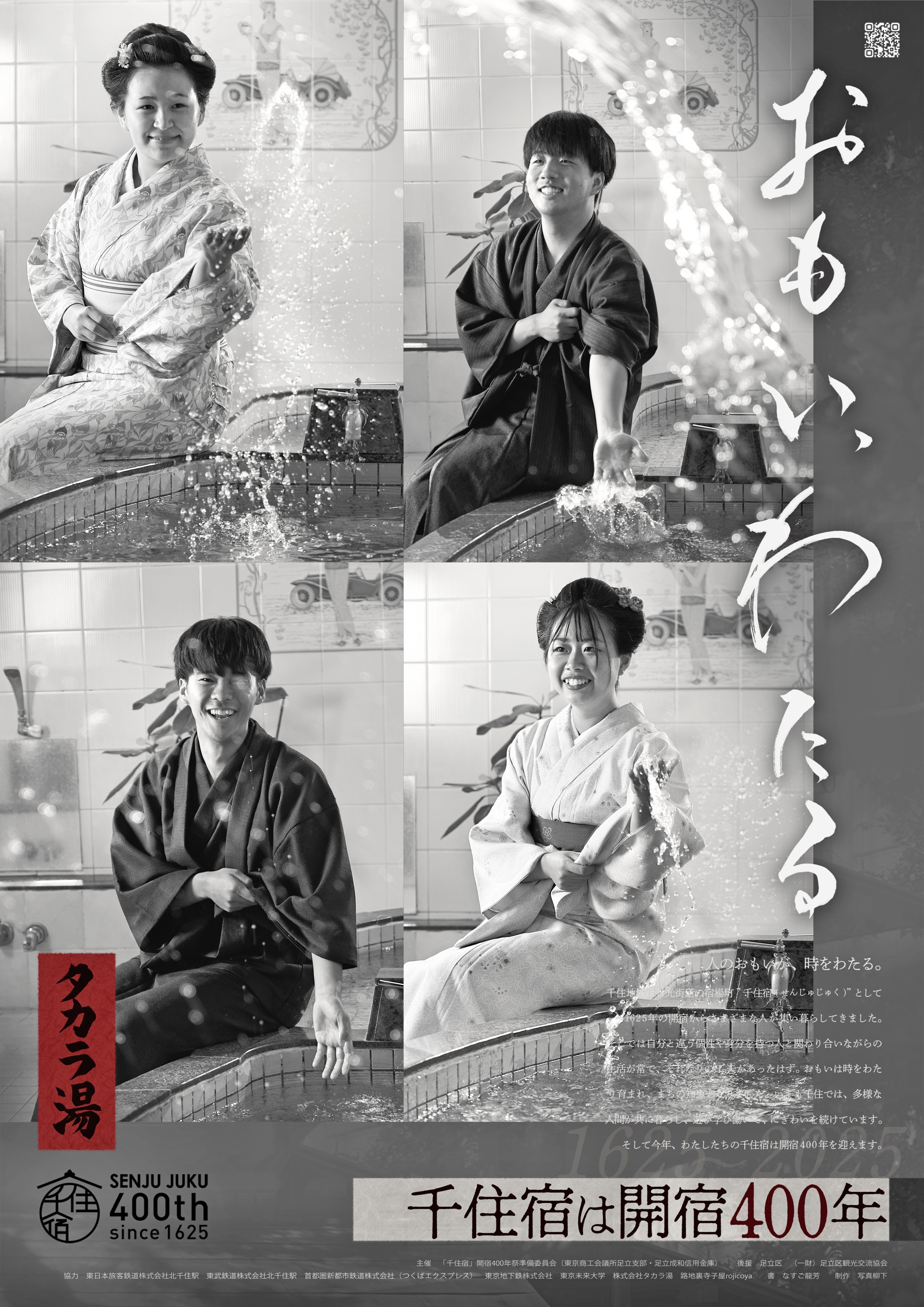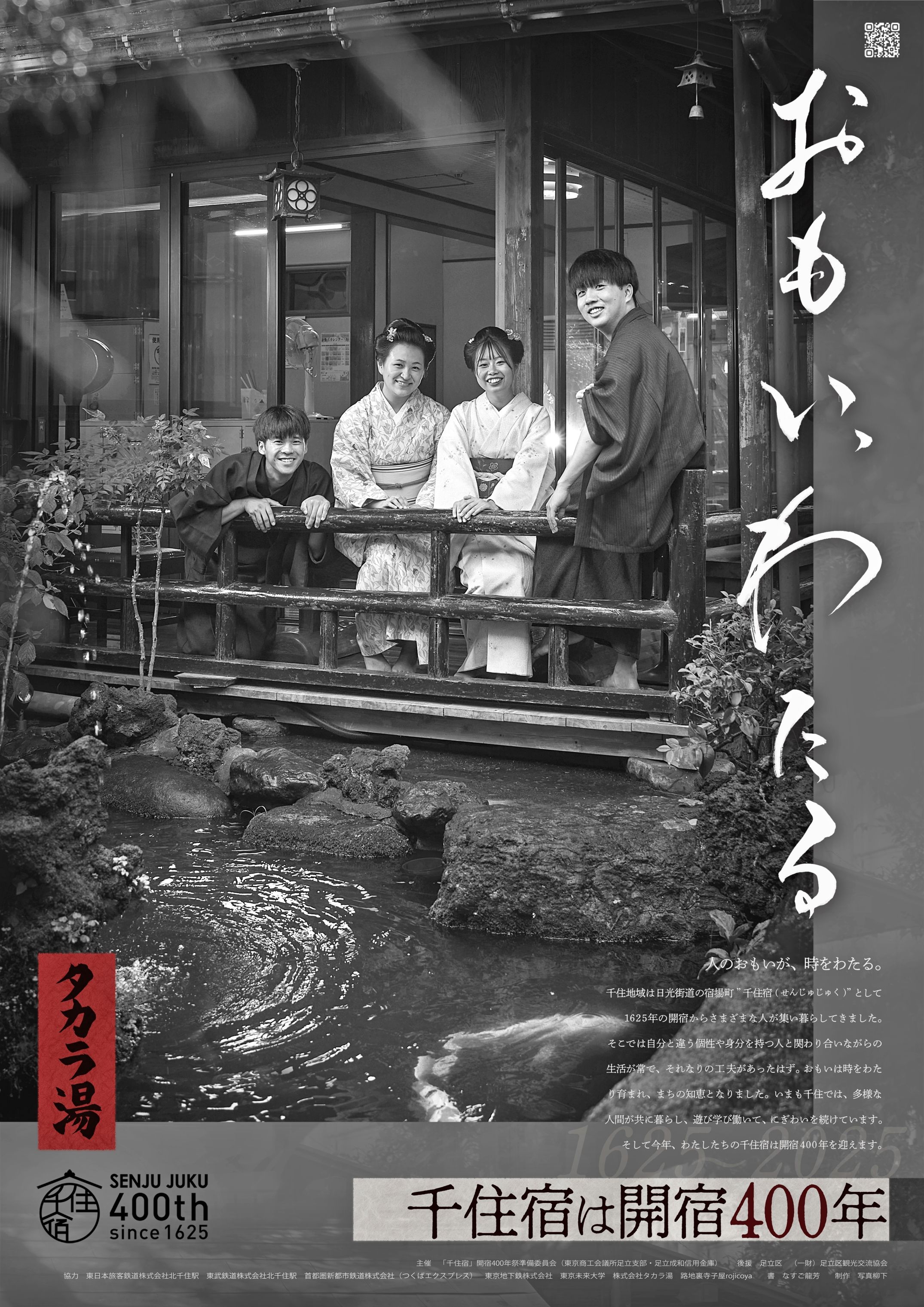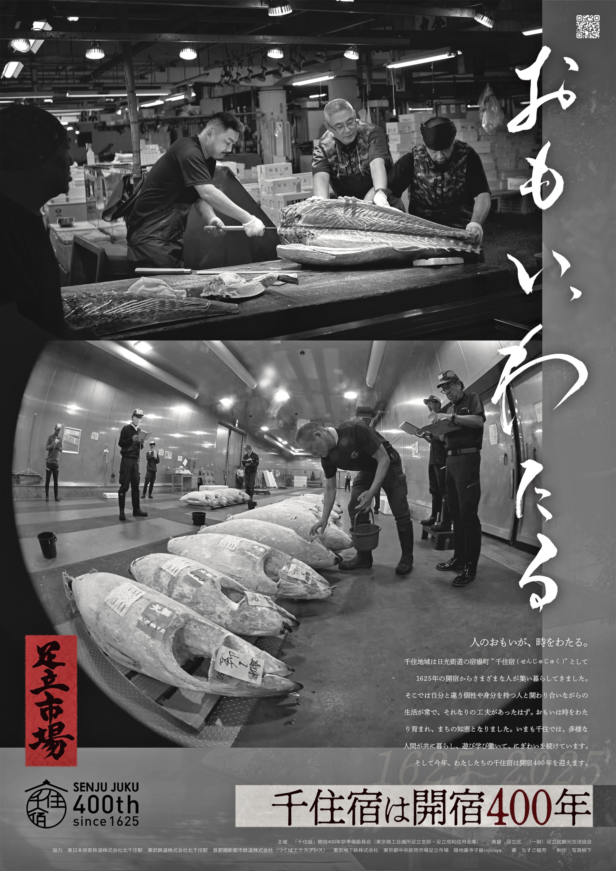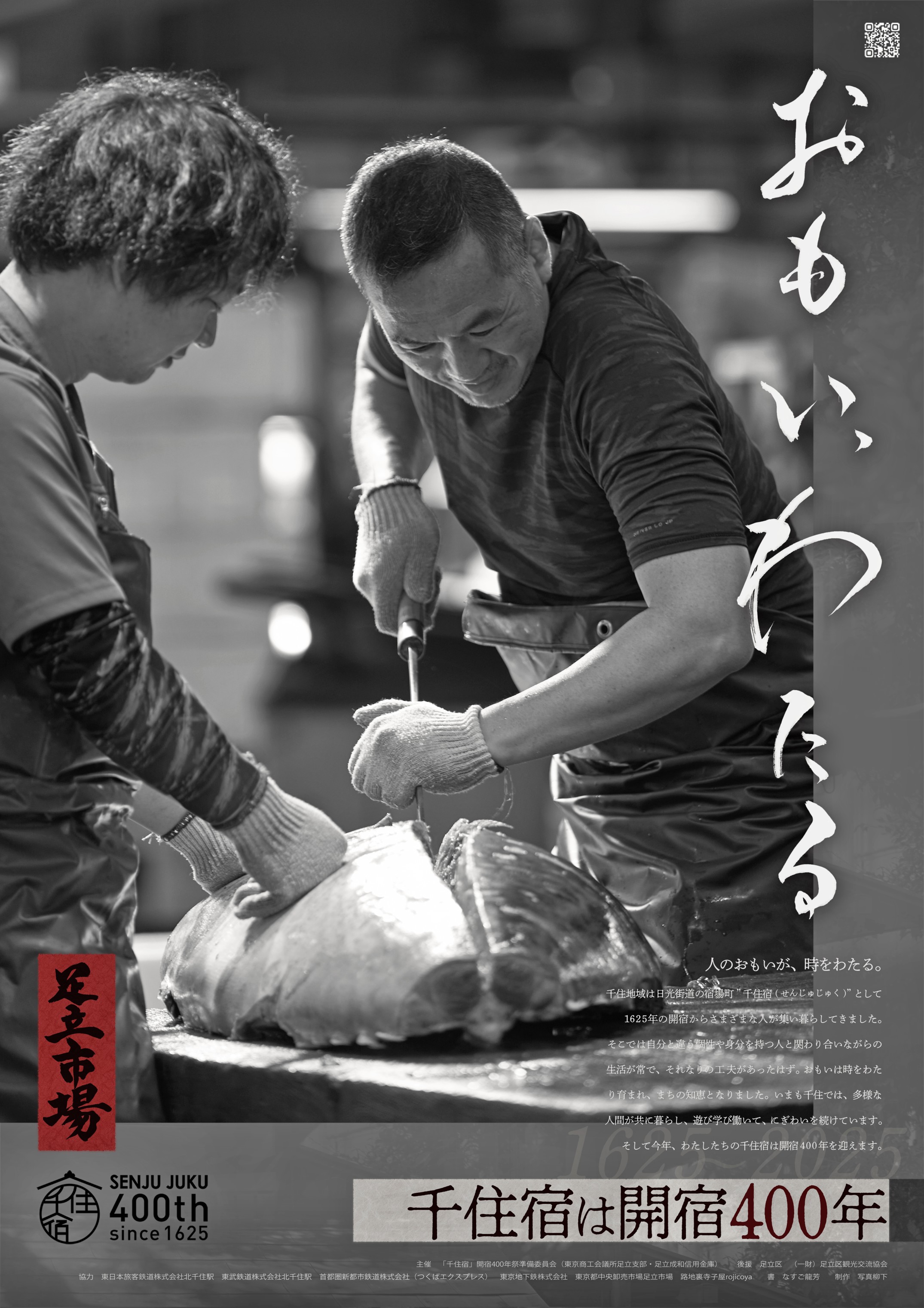 千住を含め足立区の方々にご協力をいただき、“「千住宿」開宿400年祭”の機運向上を目的としたイメージポスター "おもい、わたる" を制作いたしました。